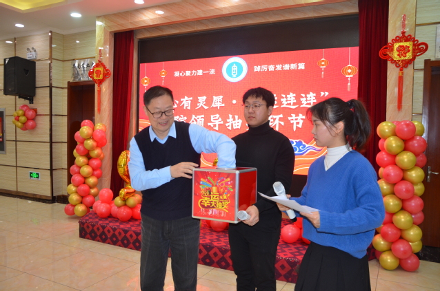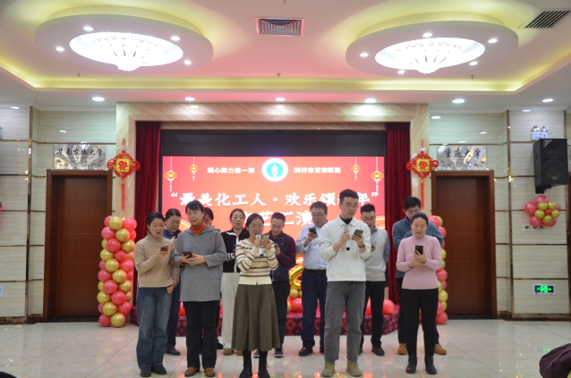伴随着欢快优美的乐曲,“最美化工人·欢乐颂新年”文艺汇演正式开始。7个基层分工会选送的文艺节目:小合唱《团结就是力量》《和你一样》《我爱祖国的蓝天》《明天会更好》《声声慢》,舞蹈《一起跳舞吧》和创意被套舞相继登台表演,给大家带来了视听盛宴,赢得了在场师生的阵阵掌声。在“岁月留声,奋进新时代”环节,出生于60、70、80、90年代的老师们积极登台,原创诗歌朗诵、《歌唱祖国》《Le portrait》《罗刹海市》《花妖》等歌曲联唱,将现场的热烈气氛推向了高潮。活动还设置了“心有灵犀,好运连连”抽奖和小朋友趣味游戏,现场掌声、呐喊声、欢笑声不断,呈现出浓浓的节日气氛。